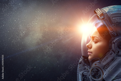 Wall mural exploring outer space. mixed media