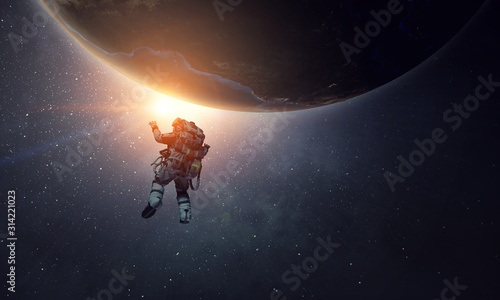 Wall mural exploring outer space. mixed media
