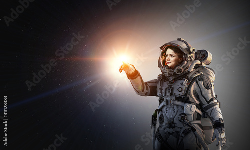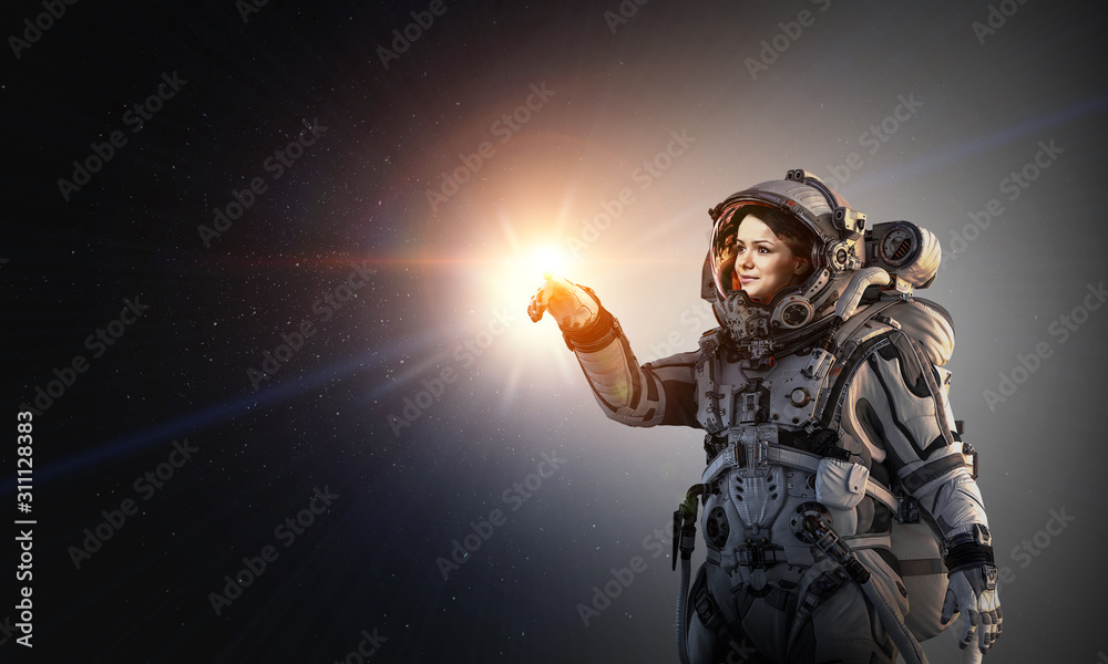 Wall mural exploring outer space. mixed media