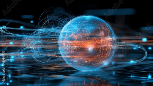 Wall mural exploring radiation feedback loops in a futuristic holographic lab simulation - Wall murals Wall mural exploring radiation feedback loops in a futuristic holographic lab simulation - Wall murals