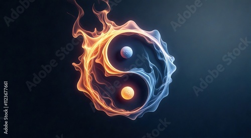 The watermark will not be included on Wall mural.: Exploring the harmony of duality through fiery and serene energies in a mystical yin-yang representa