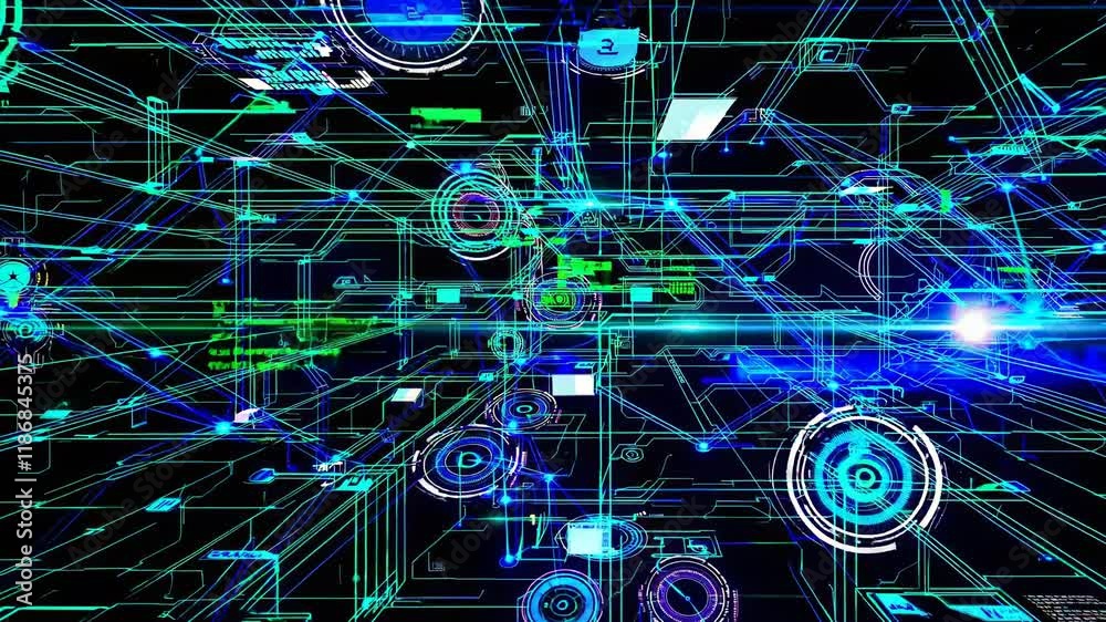 Wall mural : Exploring the intricacies of digital technology through abstract visualizations in a futuristic envi