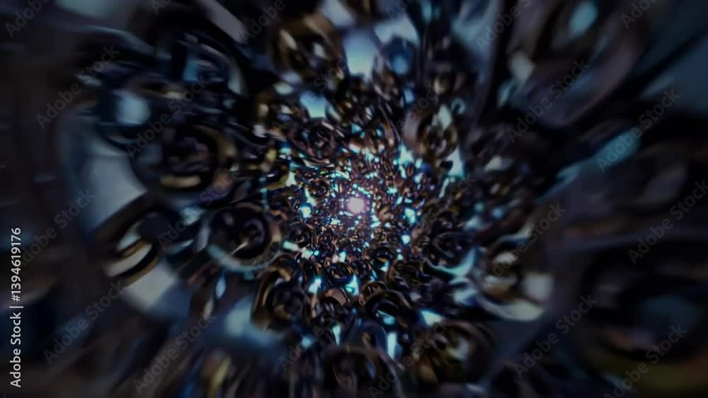 Exploring the mesmerizing depths of an abstract metallic tunnel with dynamic light patternsWall mural