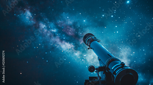 The watermark will not be included on Wall mural.: Exploring the universe through a telescope under a starry sky - generative ai