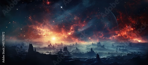Wall mural : Exploring the vastness of space with new stars and galaxies forming creating a new beginning in a be