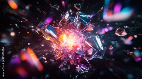 Wall mural : Explosion of crystals with bright neon flashes