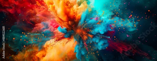 Wall mural explosion of multicolored holi powder. splash of bright colorful paint. abstract pattern of colored
