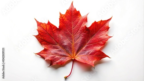The watermark will not be included on Wall mural.: Extreme close-up of a red sugar maple leaf on a white background