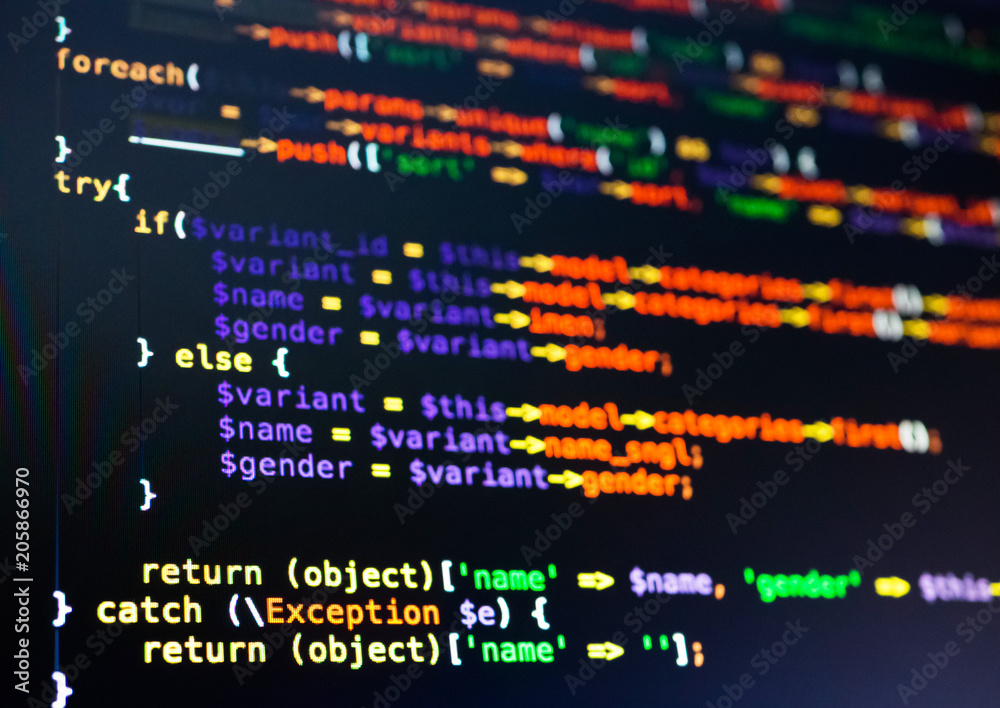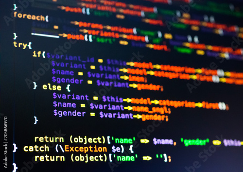 Wall mural extreme close-up of php code on the dark background - Wall murals Wall mural extreme close-up of php code on the dark background - Wall murals