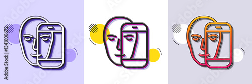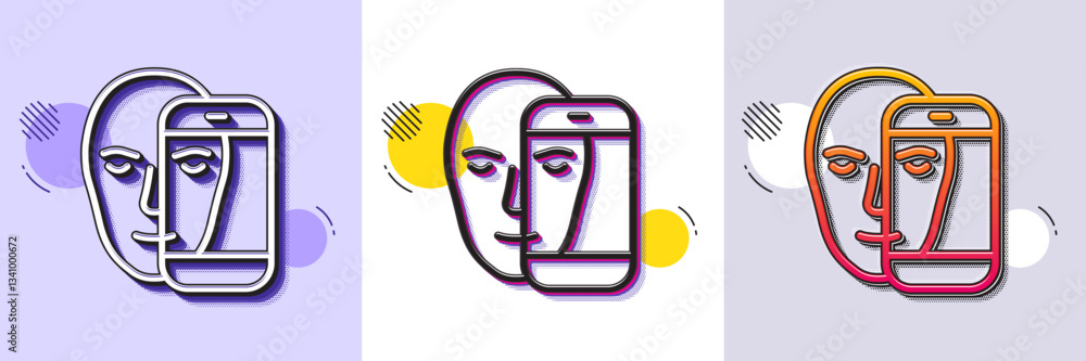 Face biometrics line icon - halftone dotted pattern - gradient icon with grain shadow - facial recognitWall mural