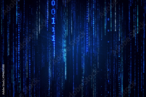 The watermark will not be included on Wall mural.: Falling binary code in the matrix style in the technological space 3d illustration