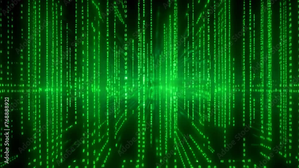 Falling binary code in the matrix style in the technological spaceWall mural