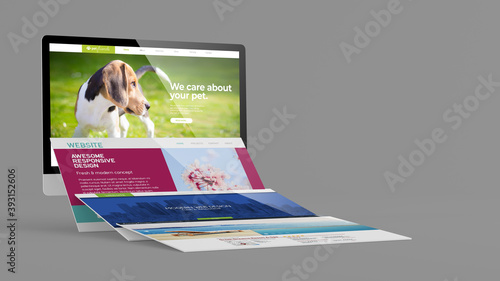 The watermark will not be included on Wall mural.: Falling screens mock up 3d rendering