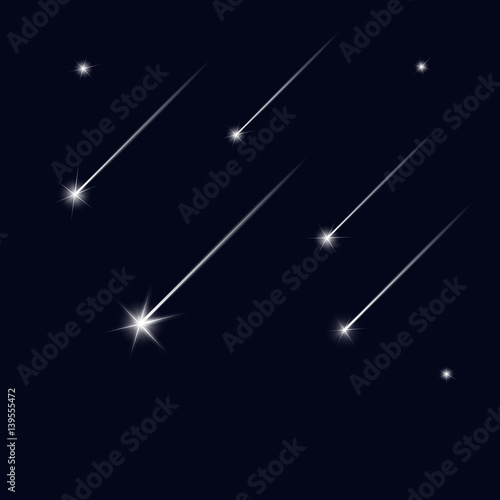 The watermark will not be included on Wall mural.: Falling stars on black sky - shooting star - light of falling meteorite in the galaxy - vector cosmos i