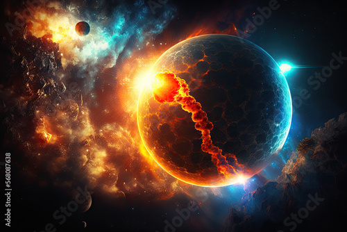 Wall mural : Fantastic birth of a new planet in the universe with stars in space - generative ai