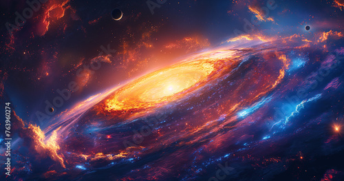 The watermark will not be included on Wall mural.: Fantastic bright multicolored outer space with stars, galaxies, constellations, planets and a black