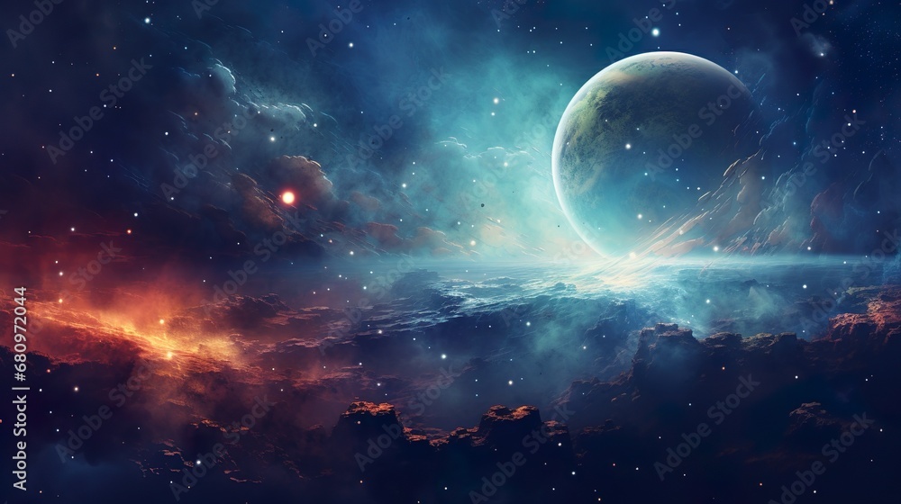 The watermark will not be included on Wall mural.: Fantastic multicolored outer space with stars, constellations, galaxies, planets and nebula fantasy