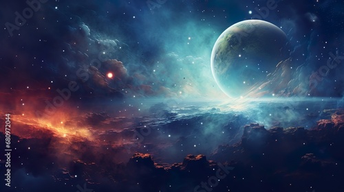 Wall mural fantastic multicolored outer space with stars, constellations, galaxies, planets and nebula fantasy