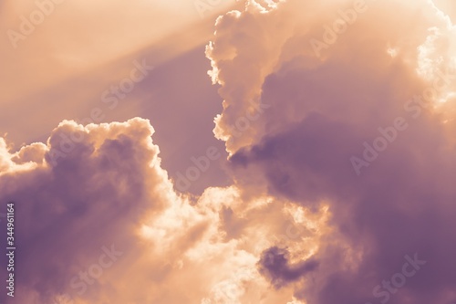 The watermark will not be included on Wall mural.: Fantastic orange violet purple sky, beautiful evening sky background - sunlight, sun rays through clo