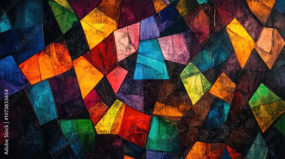 Wall mural : Fantasy abstract dark backdrop featuring fragmented colorful patterns