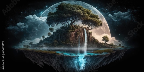 The watermark will not be included on Wall mural.: Fantasy fairytale sphere island floating in universe of night sky - superlative generative ai image -