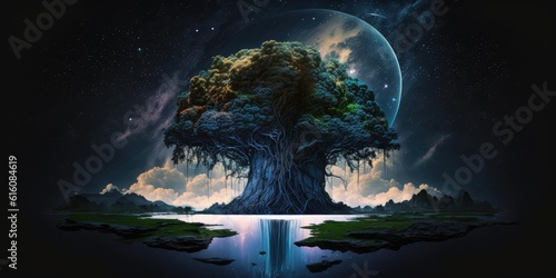 Fantasy fairytale sphere island floating in universe of night sky - superlative generative ai image - Wall mural