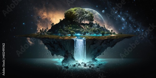 Fantasy fairytale sphere island floating in universe of night sky - superlative generative ai image - Wall mural