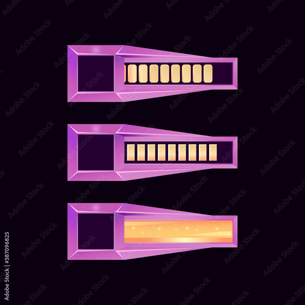 Wall mural fantasy glossy purple game ui bar with various bar styles. suitable for 2d gui vector illustration