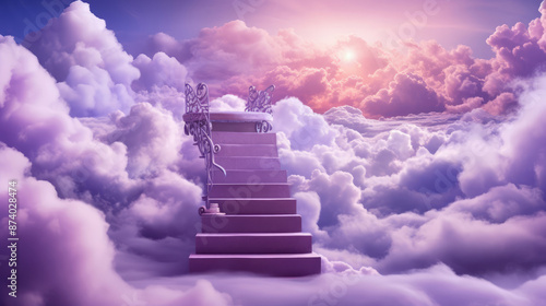 The watermark will not be included on Wall mural.: Fantasy scene with stairs and armchair against purple sky with clouds - , generative ai