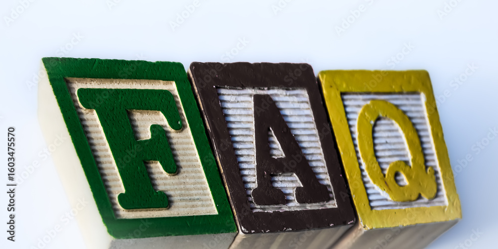 Wall mural : Faq design element with copy space at an angle - color building blocks for frequently asked questions