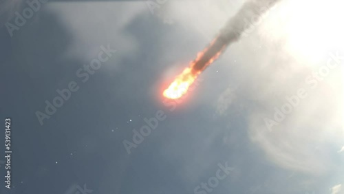 The watermark will not be included on Wall mural.: Fast blazing meteor enters earth atmosphere and clouds global threat of asteroid impact, war or miss