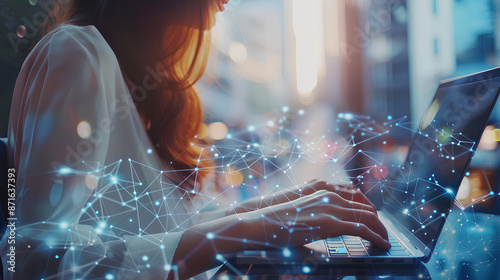 Wall mural female hands with laptop. young woman working remotely at home. concept of networking or remote work - Wall murals Wall mural female hands with laptop. young woman working remotely at home. concept of networking or remote work - Wall murals