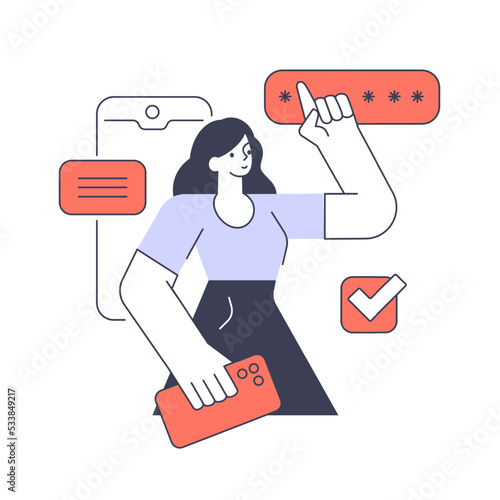 The watermark will not be included on Wall mural.: Female smartphone website application user password log in sign up vector flat illustration