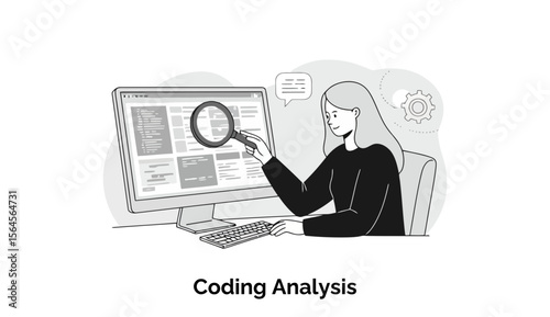 The watermark will not be included on Wall mural.: Female software developer examining code on a computer monitor in an office setting - concentrated fo