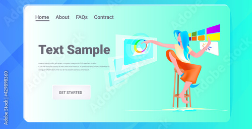 Wall mural : Female web designer drawing in graphic editor woman creating website user interface graphic design