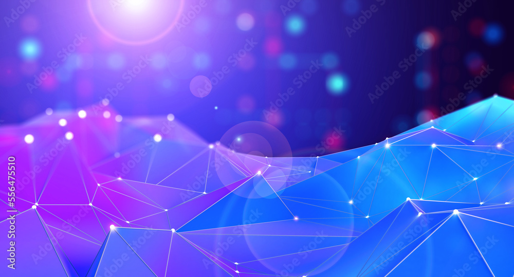Wall mural festive background hi-tech cyber technology. 3d illustration of polygonal fields of current data str
