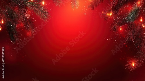 Wall mural : Festive holiday background with sparkling lights pine branches