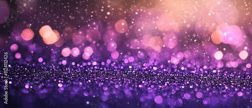 Wall mural festive purple bokeh glitter texture with christmas abstract design elements and blank space, ideal