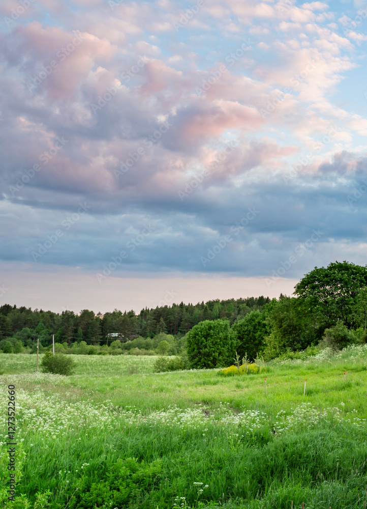 The watermark will not be included on Wall mural.: Field of grass with a few trees in the background
