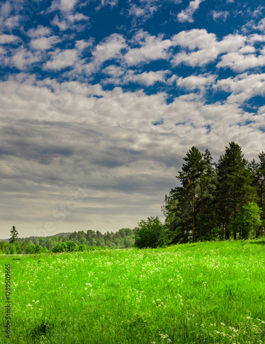 The watermark will not be included on Wall mural.: Field of grass with a few trees in the background