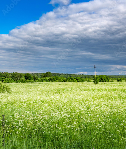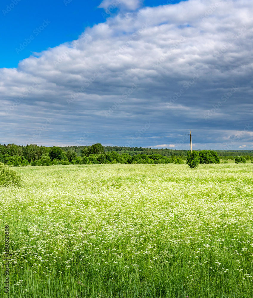 The watermark will not be included on Wall mural.: Field of grass with a few trees in the background