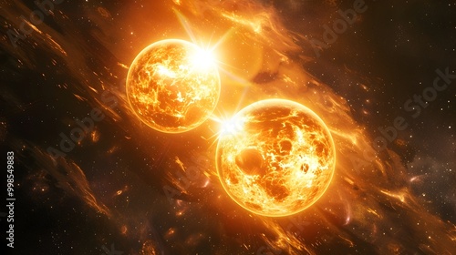 Wall mural fiery binary sun system orbited by dramatic planet with unique celestial cycles and weather patterns - Wall murals Wall mural fiery binary sun system orbited by dramatic planet with unique celestial cycles and weather patterns - Wall murals