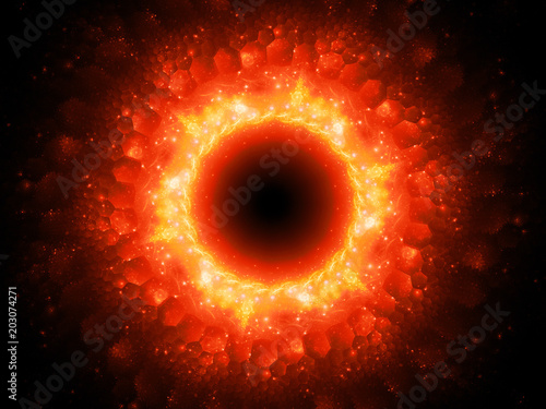 The watermark will not be included on Wall mural.: Fiery glowing magical stargate in space with hexagonal patterns