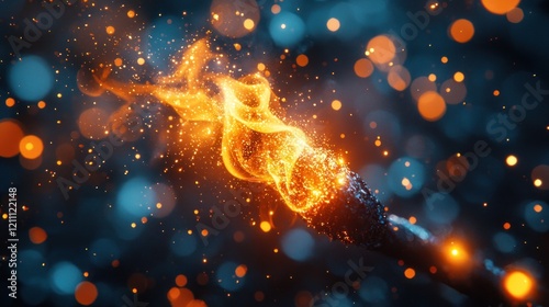 The watermark will not be included on Wall mural.: Fiery torch with shimmering sparks and bokeh lights