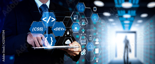 Wall mural : Financial technology flowchart and basic income mining cryptocurrency with blockchain startup unicor