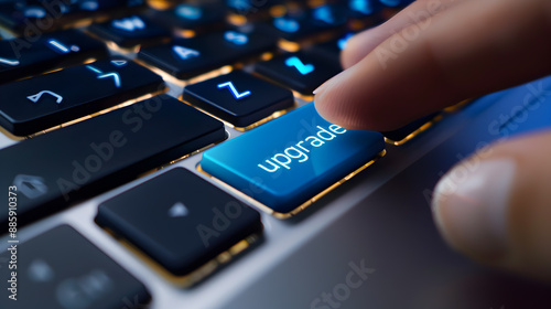 Wall mural : Finger pressing an upgrade key on a keyboard representing advancements in technology and software im