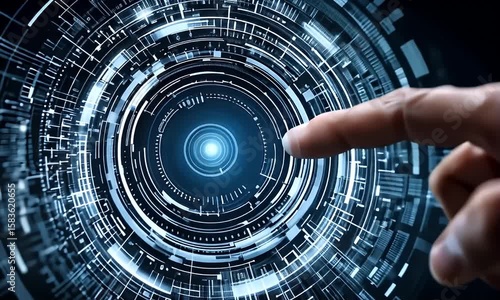 Wall mural finger touching digital interface technology connecting network - Wall murals Wall mural finger touching digital interface technology connecting network - Wall murals