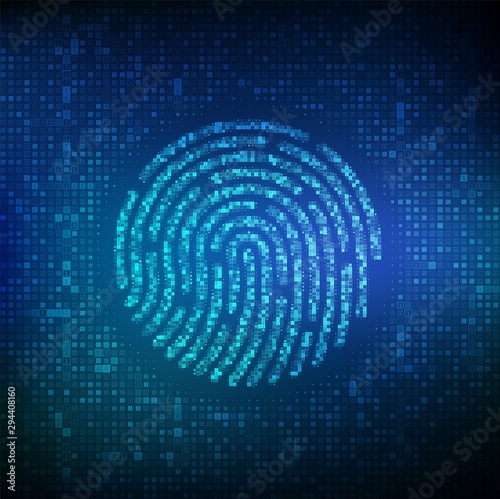 The watermark will not be included on Wall mural.: Fingerprint made with binary code - biometrics identification and approval - password control through