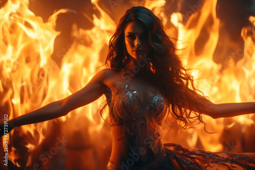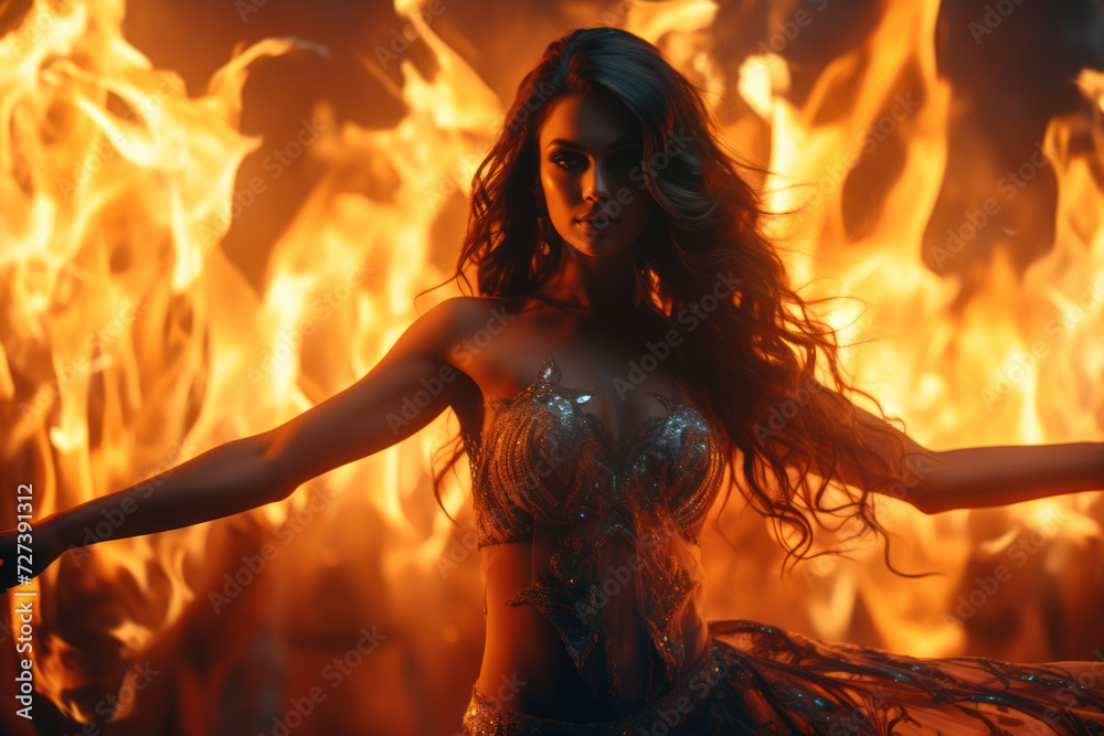 The watermark will not be included on Wall mural.: Fire dancers twirl flaming torches, creating mesmerizing patterns of light that captivate audiences