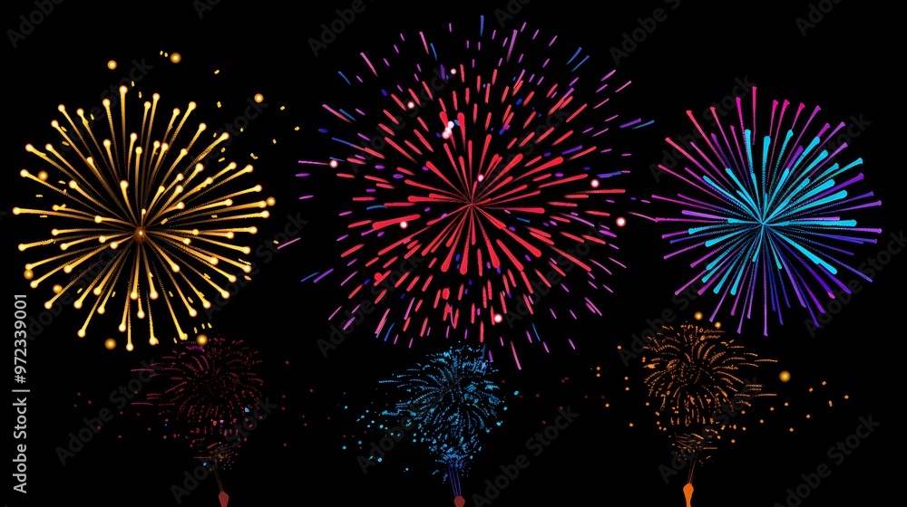 Wall mural fireworks display: colorful fireworks exploding in the night sky, creating beautiful patterns. - Wall murals Wall mural fireworks display: colorful fireworks exploding in the night sky, creating beautiful patterns. - Wall murals